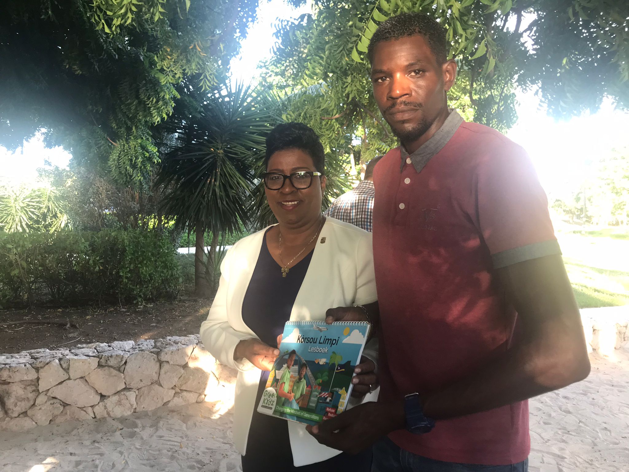 At the launch of the successful CTB campaign Tene Korsou Limpi Camapgne, GreenKidz guest teacher Remyson Caldera presented the GreenKidz Korsou Limpi book to the Minister of Social Affairs and Employment. The book will be made available in print to all FO schools in Curacao and can also be downloaded for free in two languages from the website www.greenkidz.org.