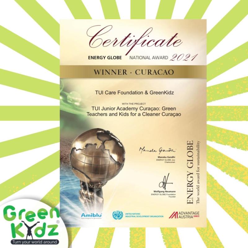 In 2021 TUI Care Foundation together with the GreenKidz Foundation was awarded the prestigious ENERGY GLOBE Award for the execution of the Green Teachers and Kids program for a cleaner Curacao in 2021.????????????????