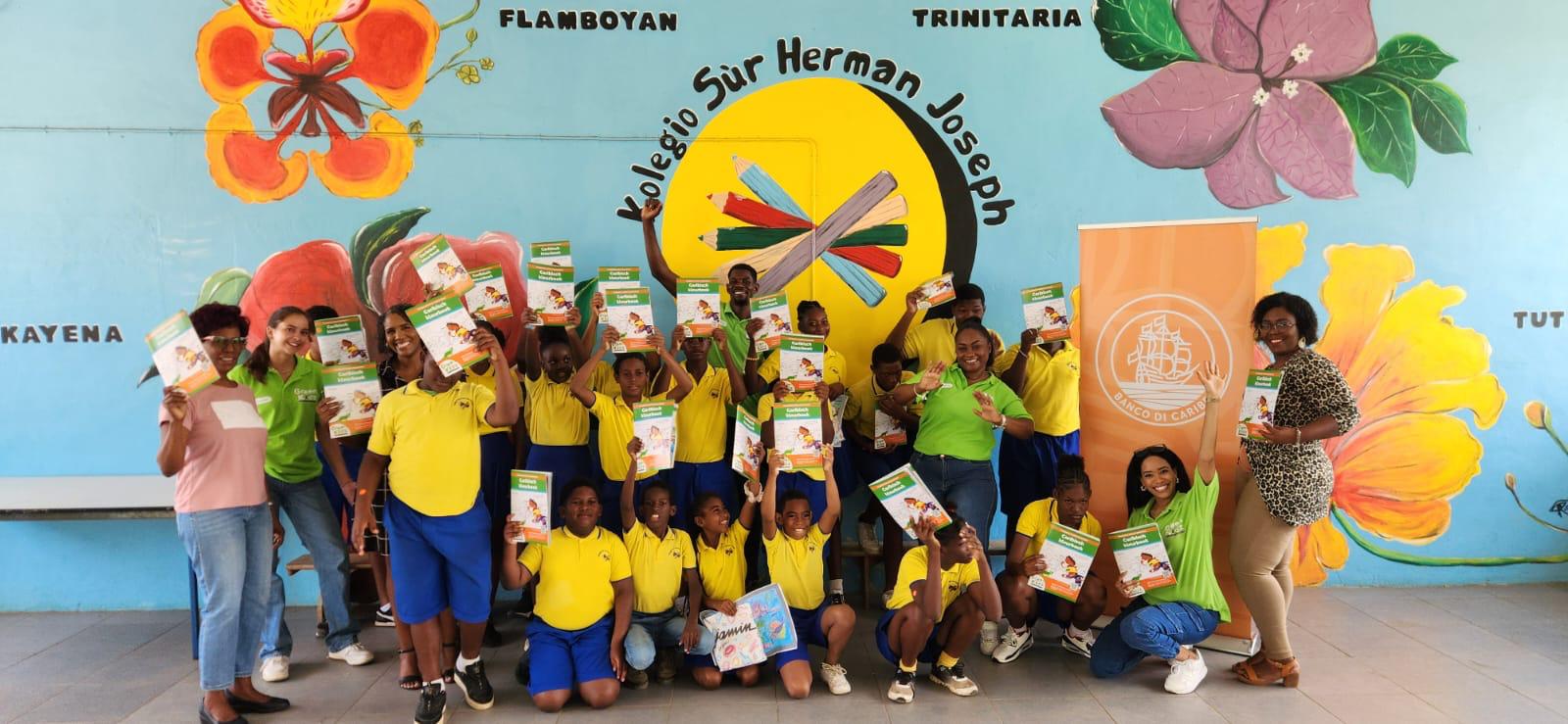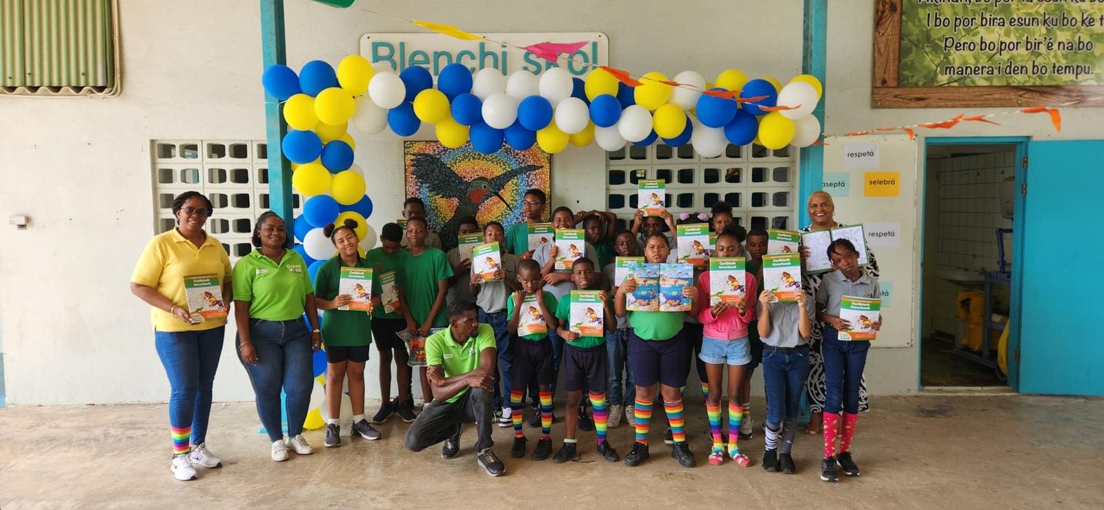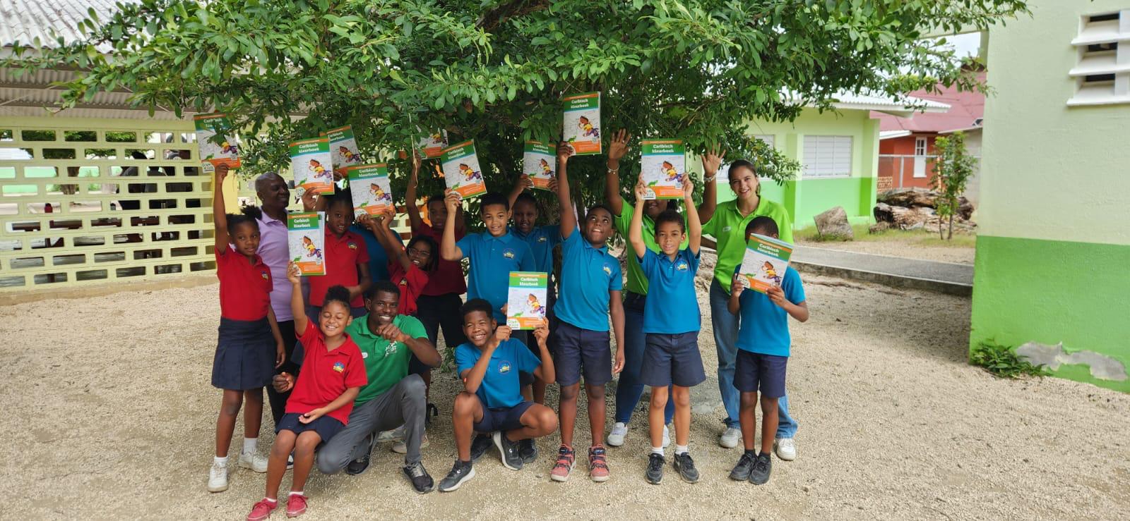 kleurboeken weggeven aan speciale leerlingen op Curaçao.