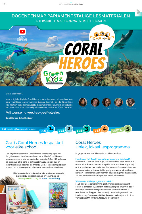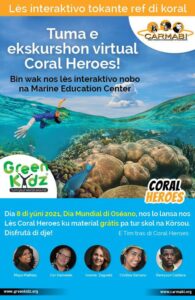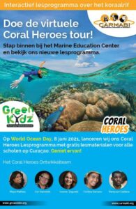 With this teaching program GreenKidz and Carmabi want to jointly contribute to Coral Awareness on Curaçao. They want to make primary education students aware of the beauty and vulnerability of Curaçao’s coral reef and encourage them to enjoy it in a responsible way.