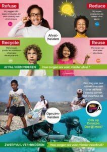 This teaching program is about waste, litter and plastic soup. It teaches children what types of waste there are and how to deal with them wisely. With many recognisable examples, it shows how you can reduce waste yourself by applying the principles of Reduce, Reuse, Recycle and Refuse in everyday life, and how you can roll up your sleeves on World Clean Up Day to clean up your island.